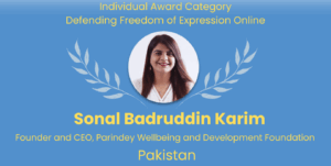 Sonal Badruddin Karim works to make online spaces safer for women, young leaders, and marginalised communities. She founded Parindey Wellbeing and Development Foundation and contributes to national efforts to expand youth leadership. She is listed in the 2025 Senior List of World Kind Leaders.